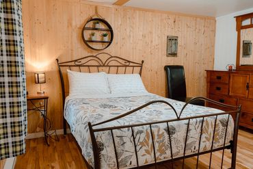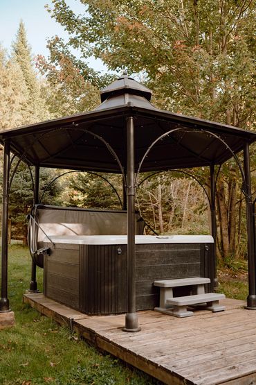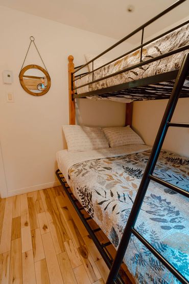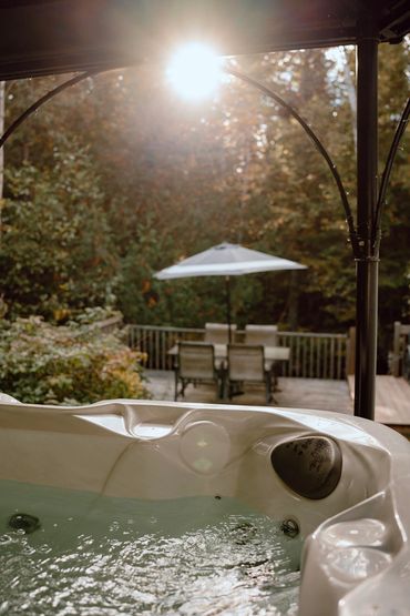 Le chalet Le Jasmin offre une descente privée vers la rivière, un grand patio, et un terrain isolé à l'arrière. Il comprend deux chambres : une avec un lit double et l'autre avec un lit superposé (double en bas, simple en haut). La cuisine est entièrement équipée, et une salle de bain avec douche est à votre disposition. Profitez du poêle à bois intérieur, du spa extérieur 5 places, du BBQ (en été) avec ensemble de patio, et du rond de feu de camp. Capacité : 5 personnes maximum. Wi-Fi gratuit, climatisation portative, couvre-feu : 23h pour feu et spa, 22h pour la musique. Fêtes bruyantes interdites.