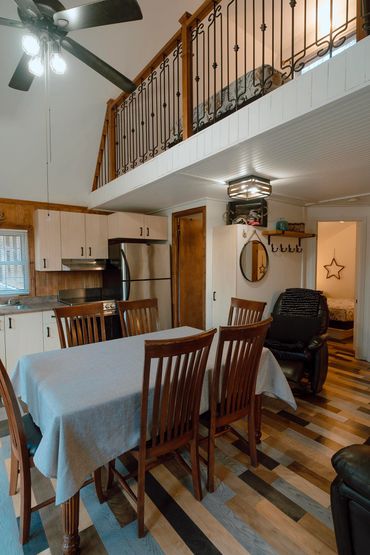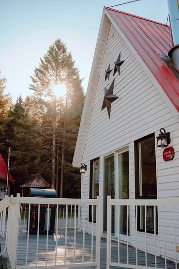 Situé aux abords d'une rivière et d'un lac de pêche, le chalet Le Quatre-Temps vous charmera par ses deux étages et sa mezzanine. Il offre 2 chambres avec lits doubles et une chambre mezzanine avec lit double, chaise berçante et causeuse inclinable dans le salon. Le chalet comprend une salle de bain avec douche, une cuisine complète avec vaisselle, un poêle à bois, un vaste balcon avec spa 5 places, BBQ (été) et table patio, ainsi qu'un rond de feu extérieur. Wi-Fi gratuit, climatisation portative, couvre-feu : 23h pour le feu et spa, 22h pour la musique. Fêtes bruyantes interdites.