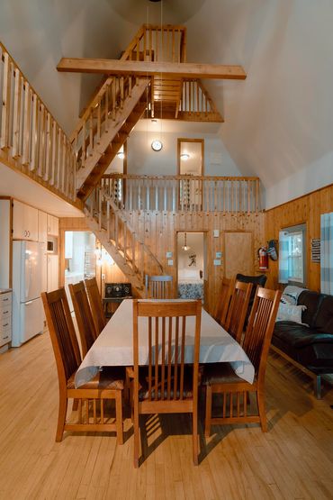 Le chalet Le Tournesol, avec ses trois étages à aire ouverte et ses mezzanines, vous charmera dès votre arrivée. Il peut accueillir jusqu'à 10 personnes (8 confortablement) avec ses 4 chambres à lit double et deux futons. Profitez d'une grande cuisine entièrement équipée, d'une salle de bain avec douche, bain, laveuse et sécheuse, et d'un foyer intérieur. À l'extérieur, un rond de feu, un BBQ au propane (en été) ainsi qu'un spa 7 places sous abri complètent votre confort. Wi-Fi gratuit. Couvre-feu 23h pour le feu et le spa, musique jusqu'à 22h, fêtes bruyantes non autorisées.